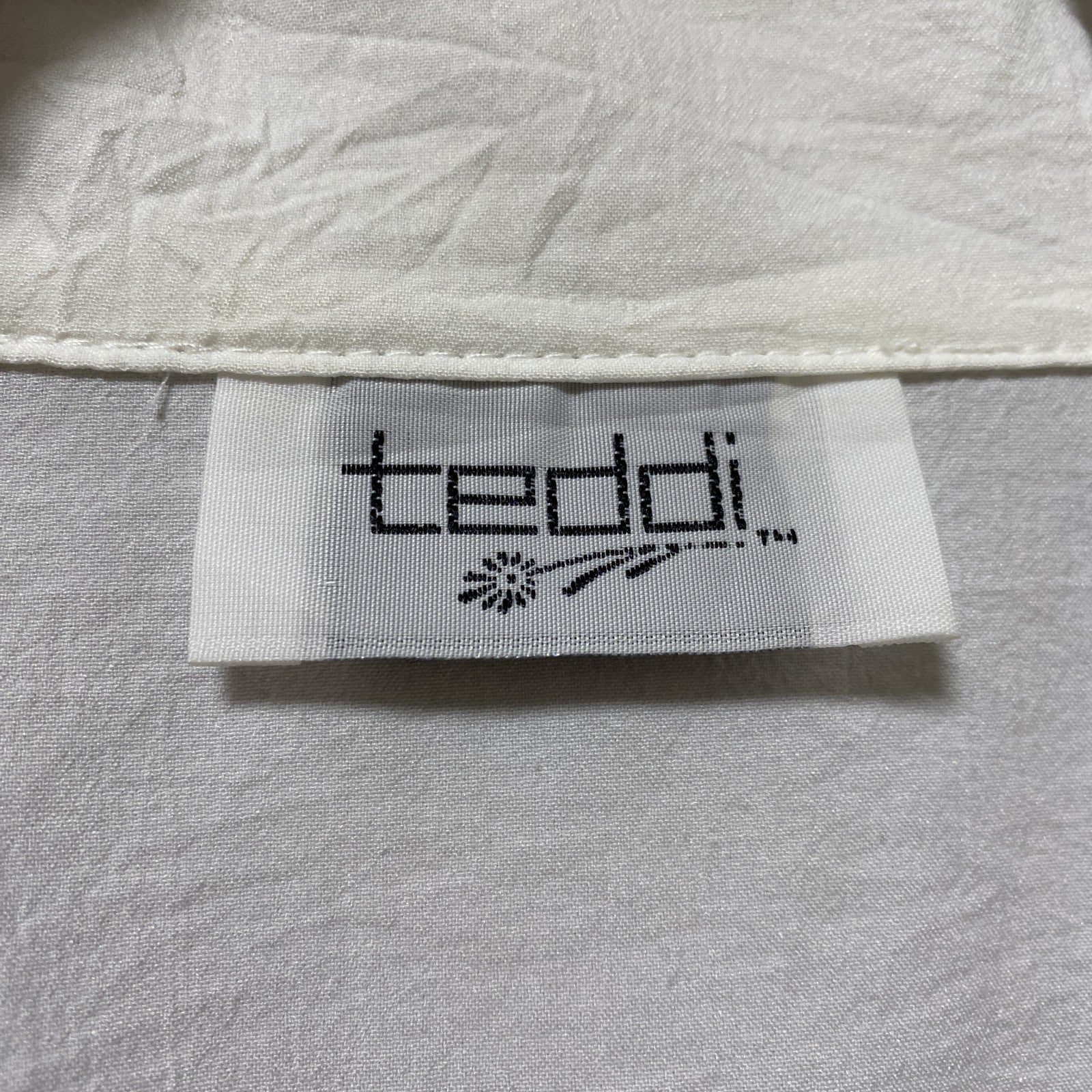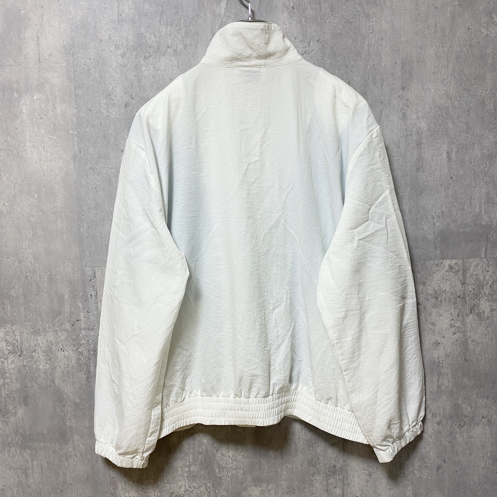 古着 used teddi テディ 長袖フルジップナイロンジャケット 肩パッド 白 ホワイト 緑 グリーン Mサイズ