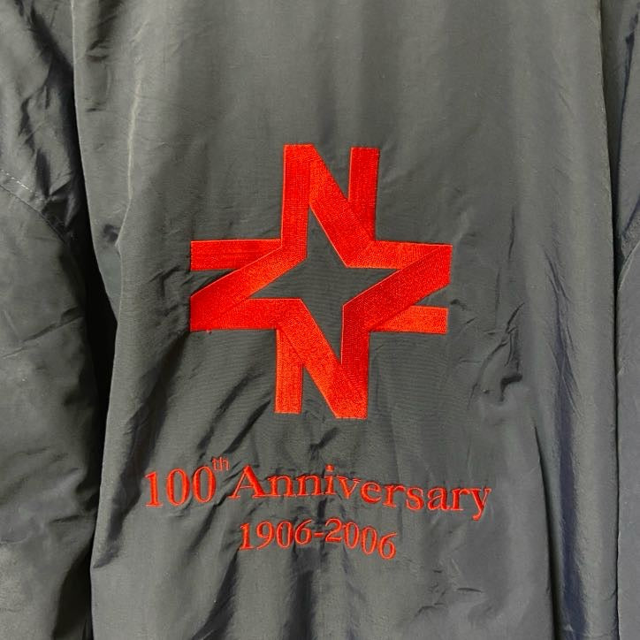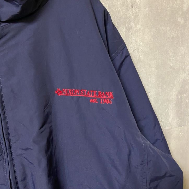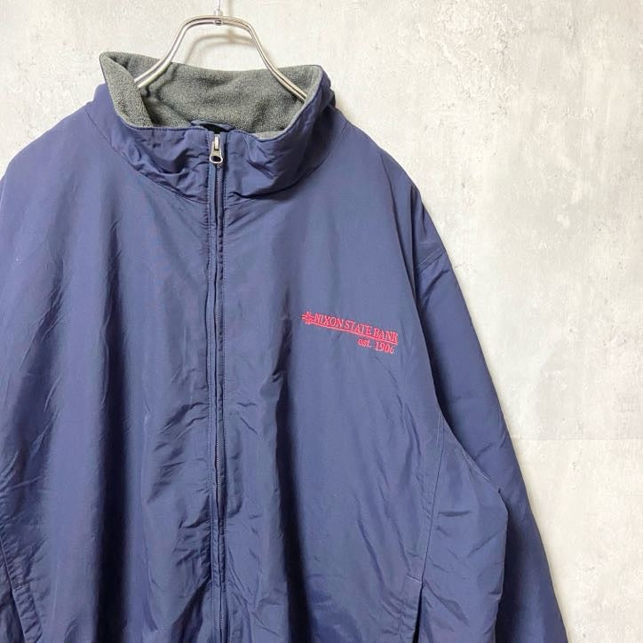 古着 used LANDS'END ランズエンド 長袖ナイロンジャケット ブルゾン 企業ロゴ刺繍 ネイビー 裏フリース XLサイズ