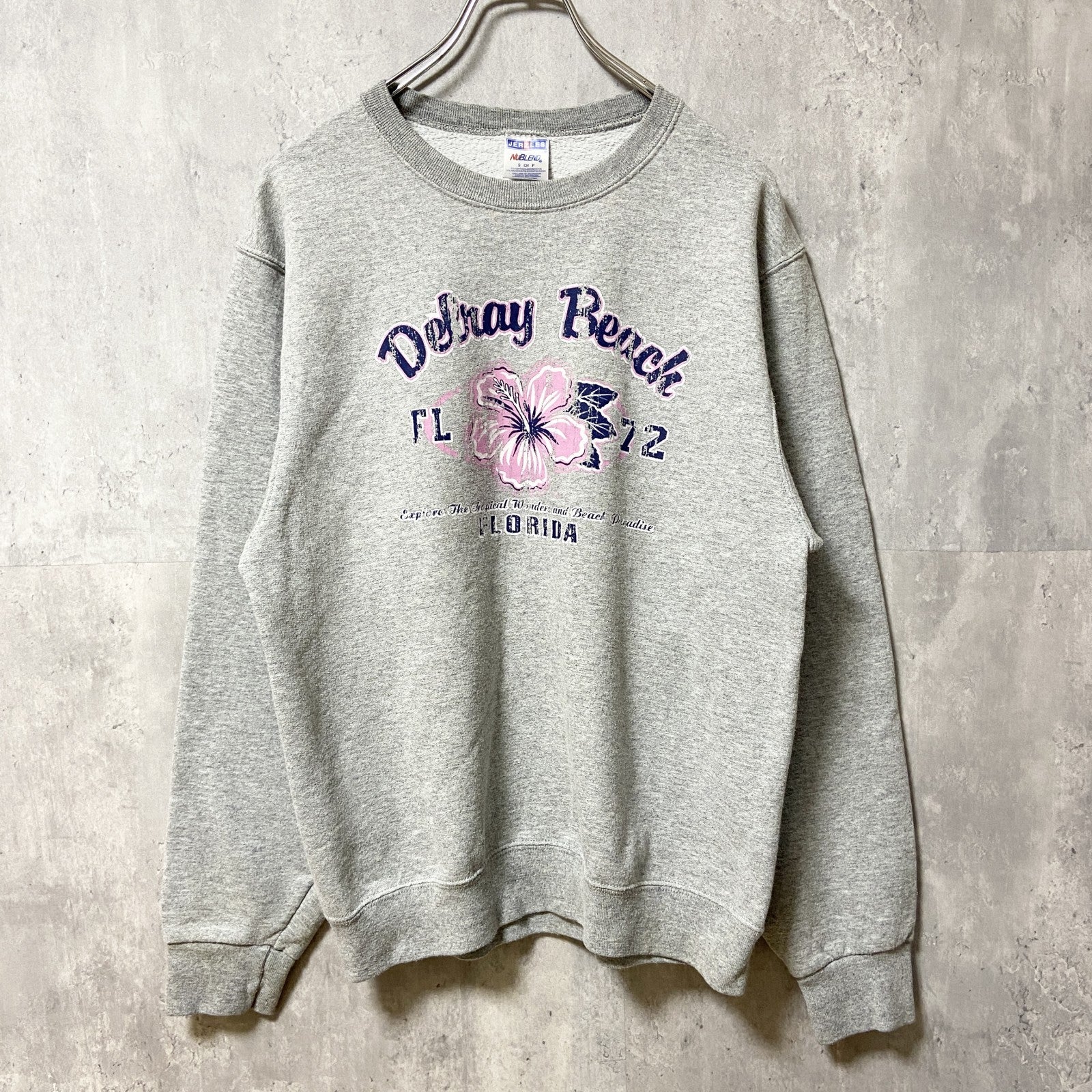 古着 used JERZEES FLORIDA 長袖プリントスウェット トレーナー グレー クルーネック 秋冬服 Sサイズ