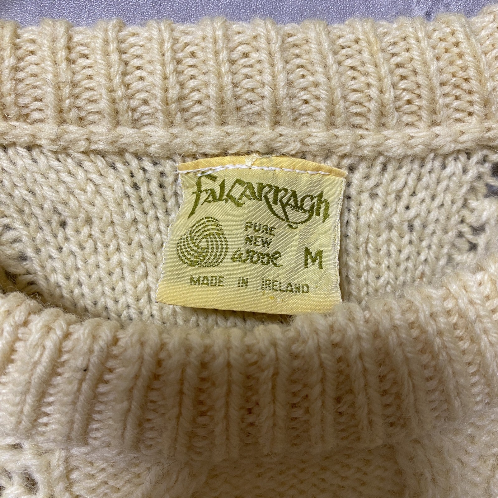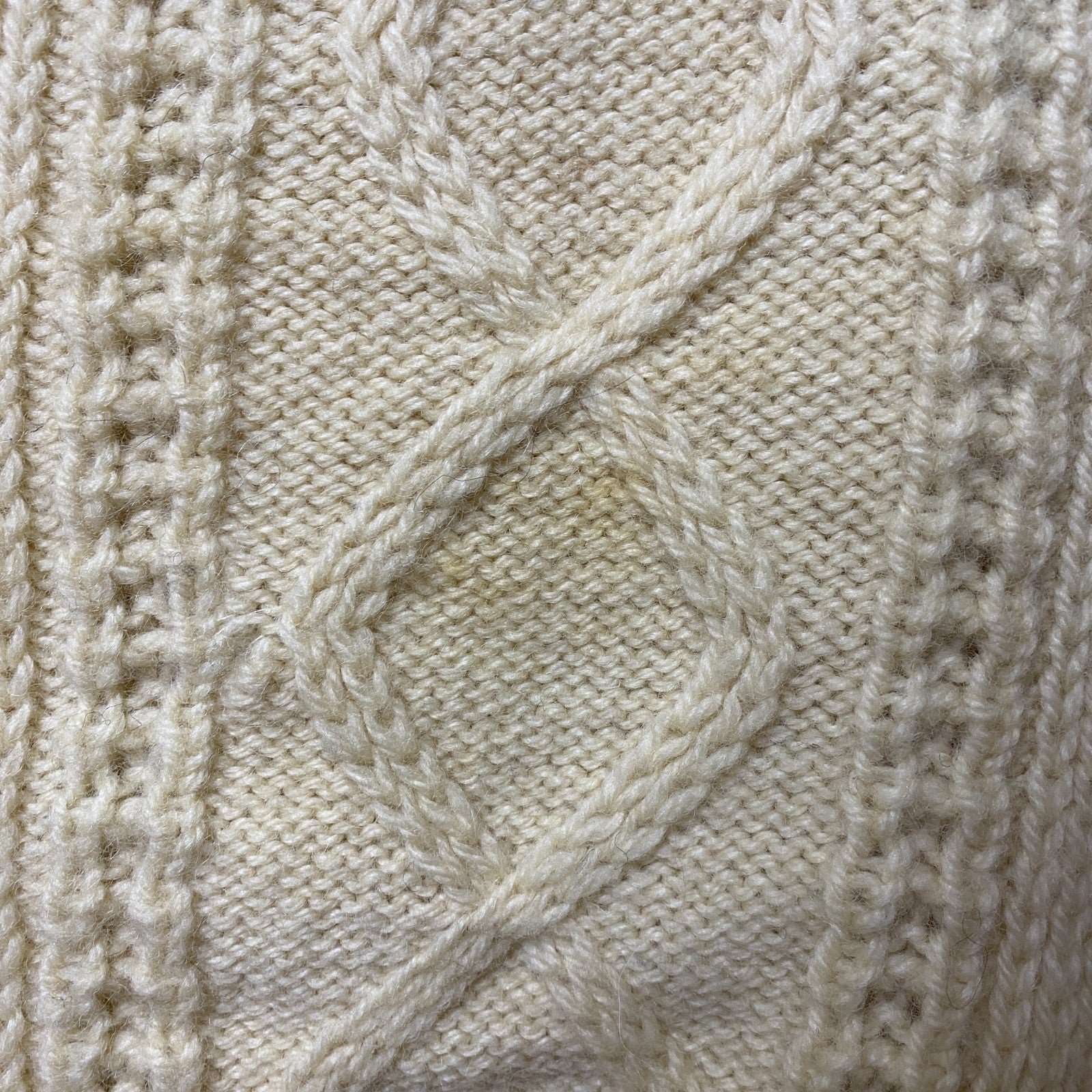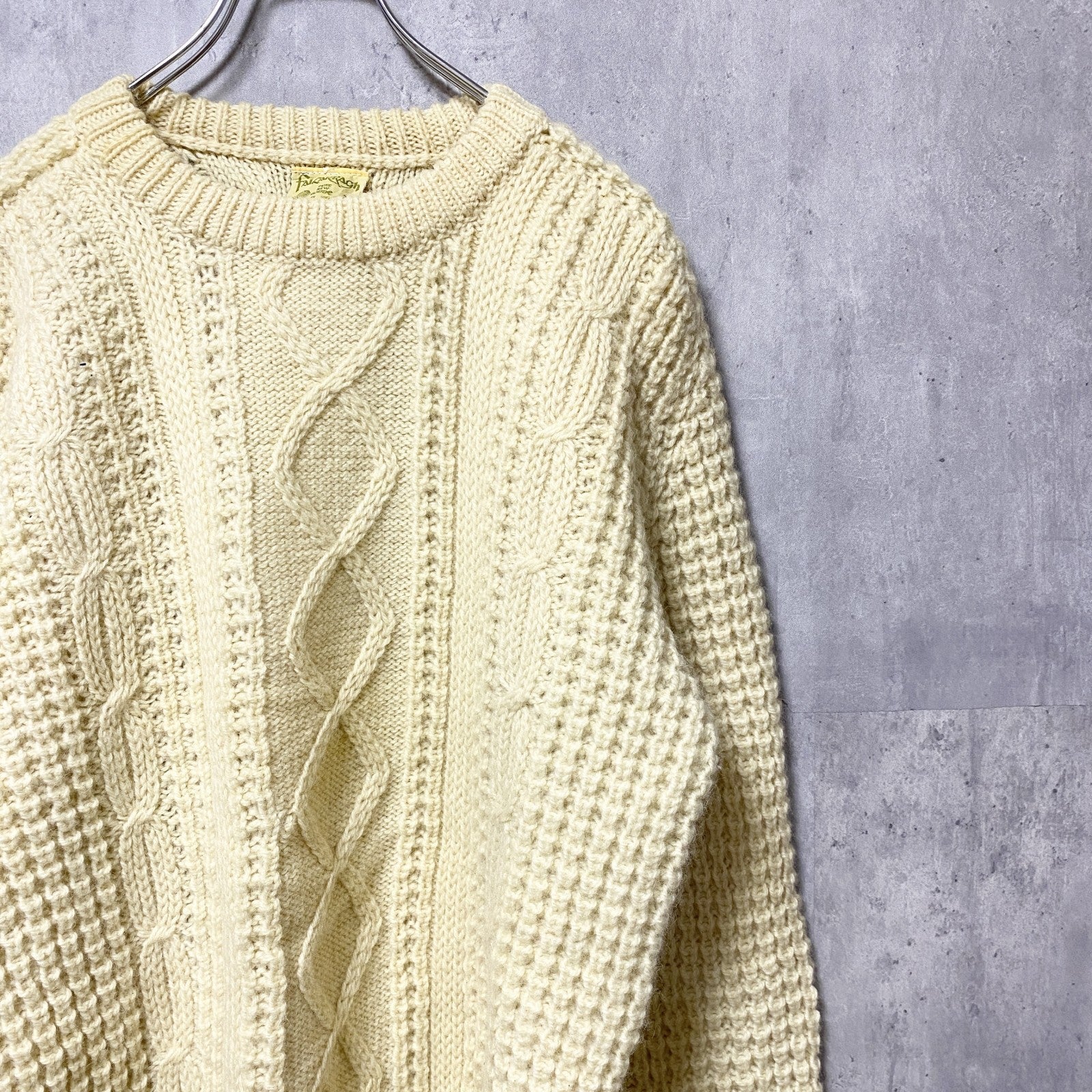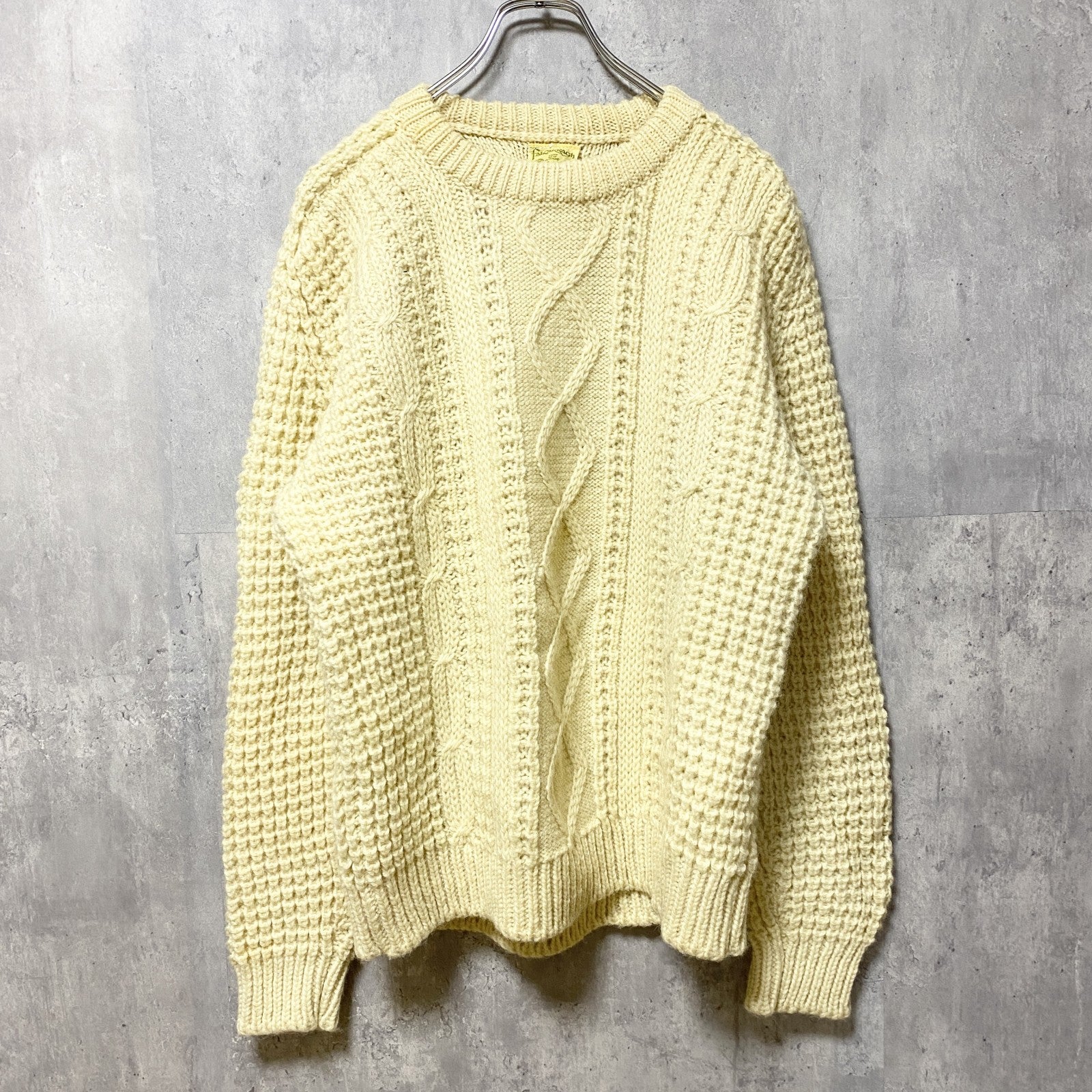 古着 used ~80s アイルランド製 ウール 長袖フィッシャーマンニット セーター アランニット ケーブル 白 Lサイズ