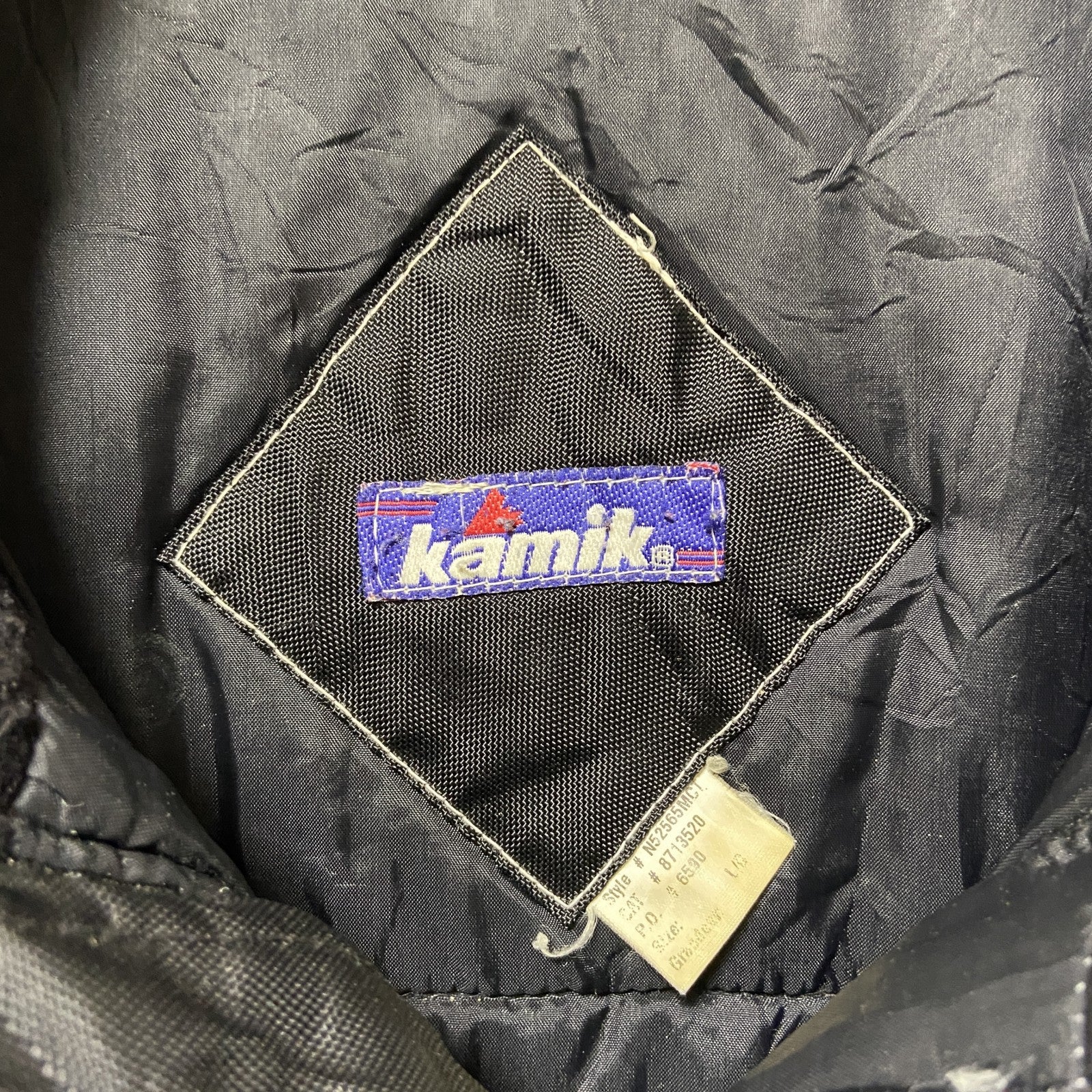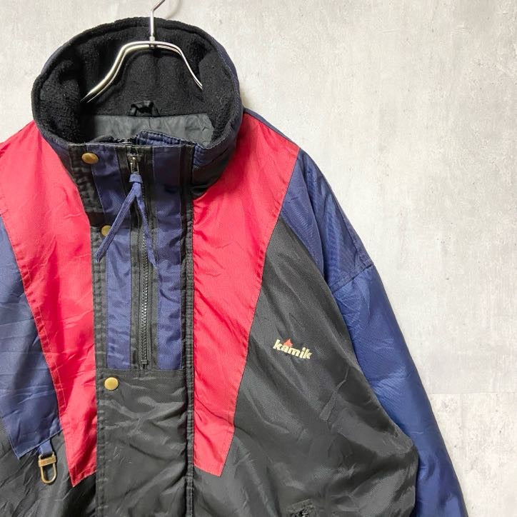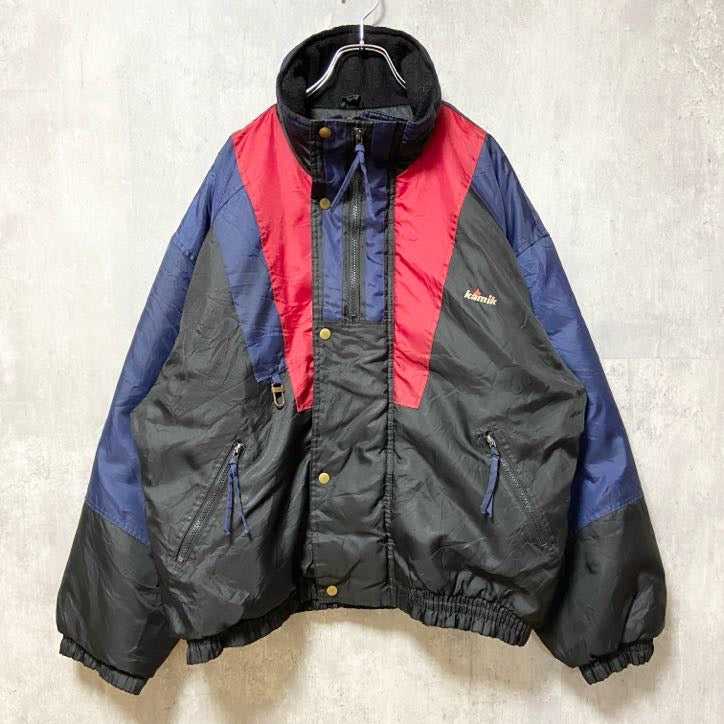 古着 used kamik 長袖中綿ナイロンジャケット ボンバージャケット マルチカラー ワンポイントロゴ刺繍 Lサイズ