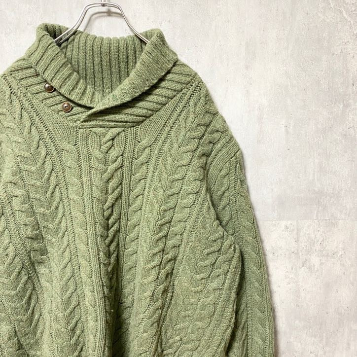 古着 used Polo Ralph Lauren ポロラルフローレン ケーブルニットセーター ショールカラー カーキ XLサイズ
