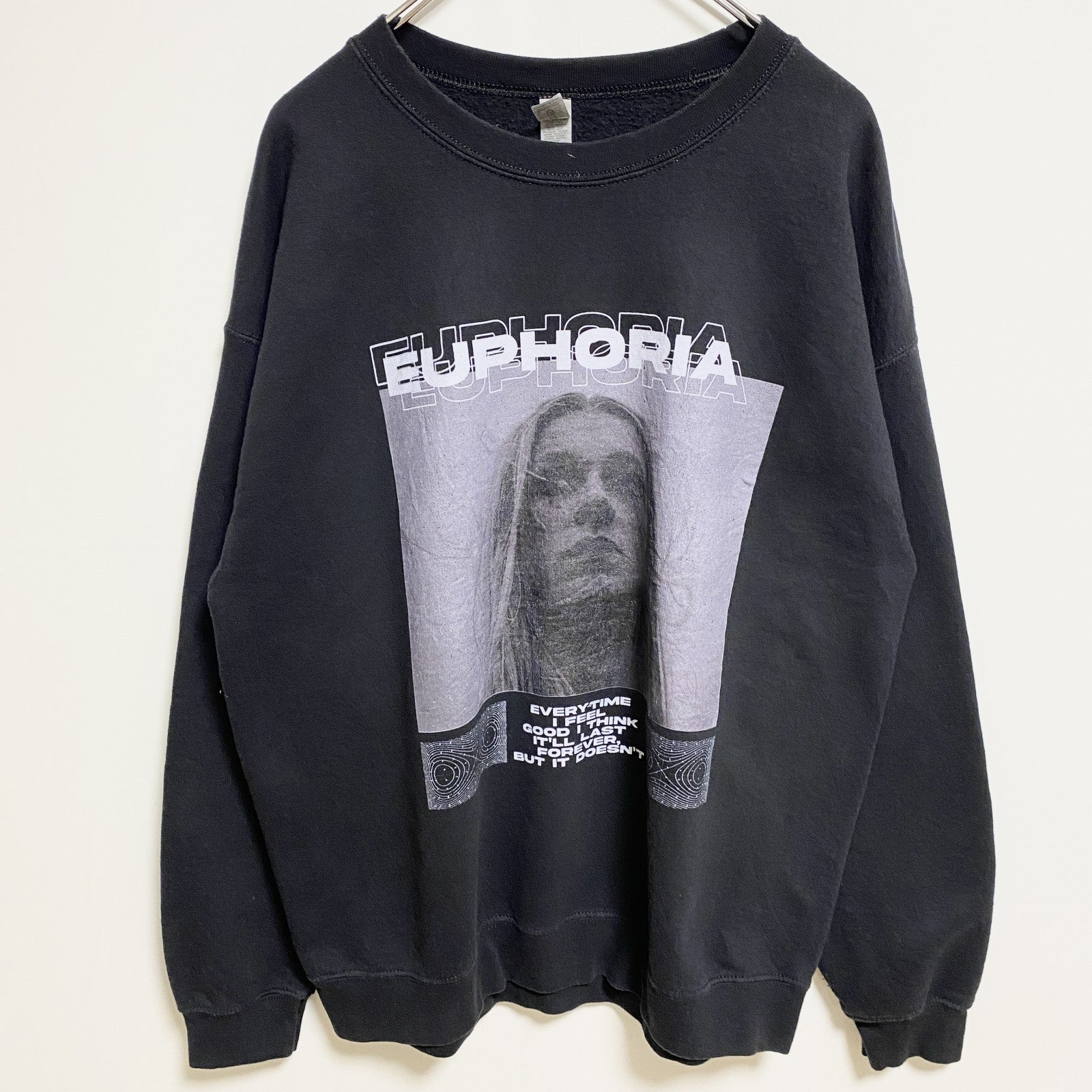 古着 used GILDAN ギルダン 長袖グラフィックプリントスウェット トレーナー EUPHORIA 黒 ブラック Lサイズ