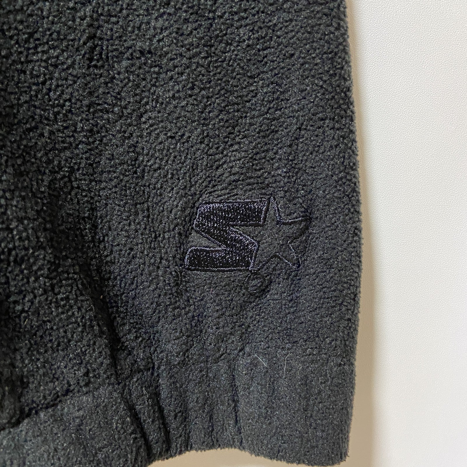古着 used STARTER スターター 長袖無地フリースジャケット フルジップアウター ロゴ刺繍 黒 ブラック Lサイズ