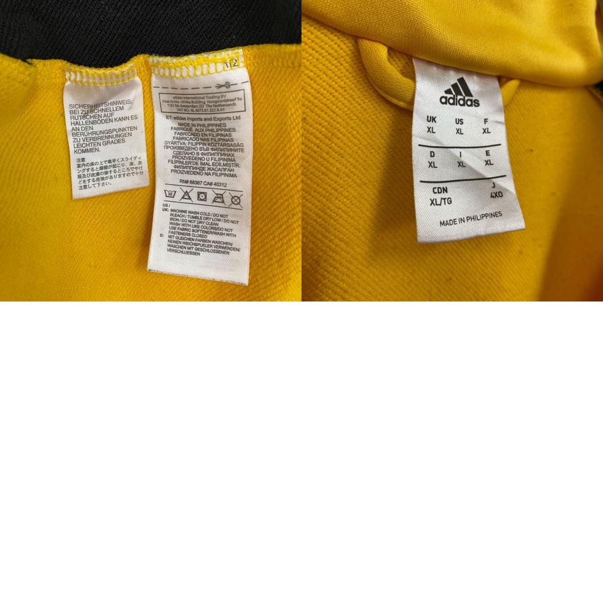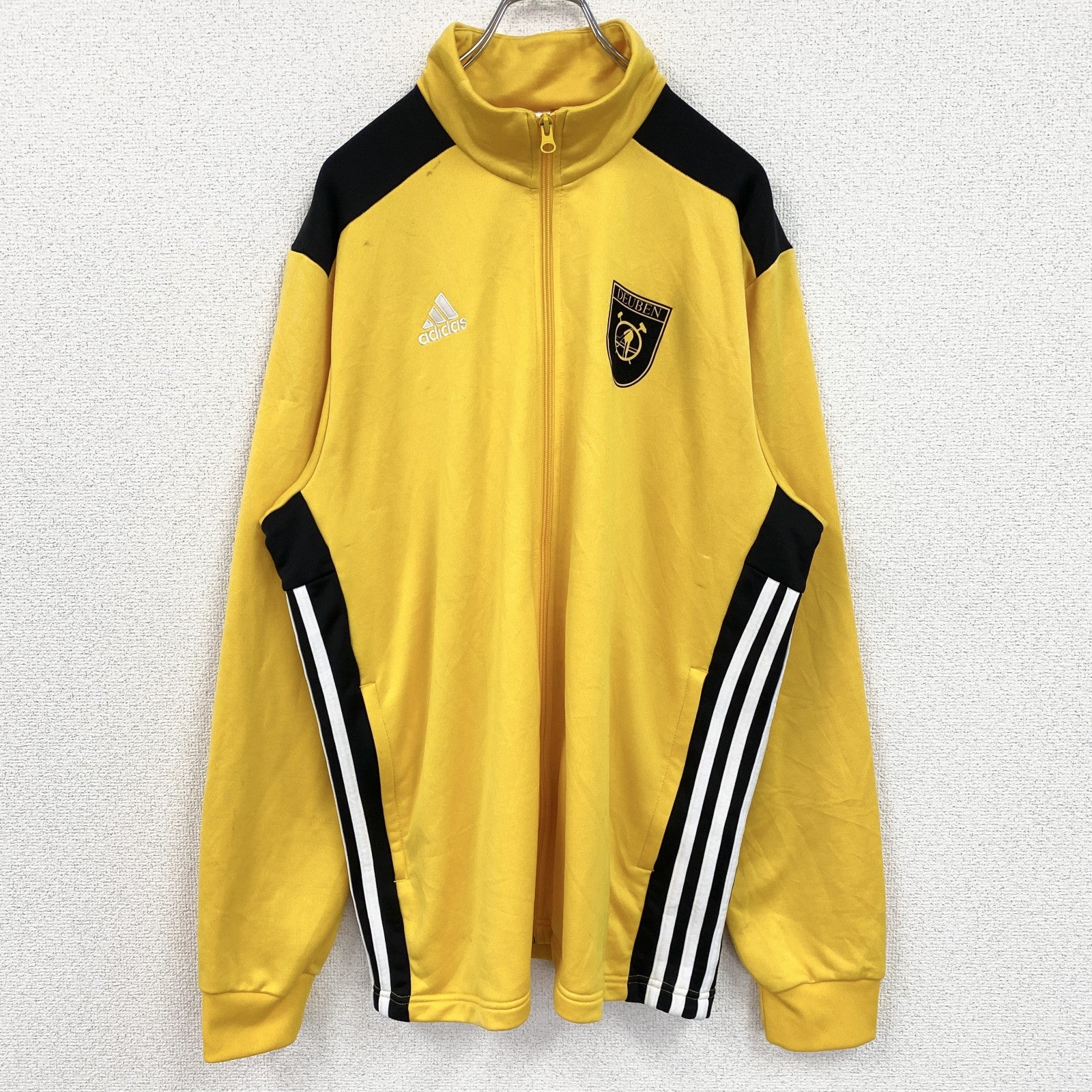 古着 used adidas アディダス 長袖ワンポイント刺繍ジャージ フルジップトラックジャケット サッカー 黄色 XLサイズ