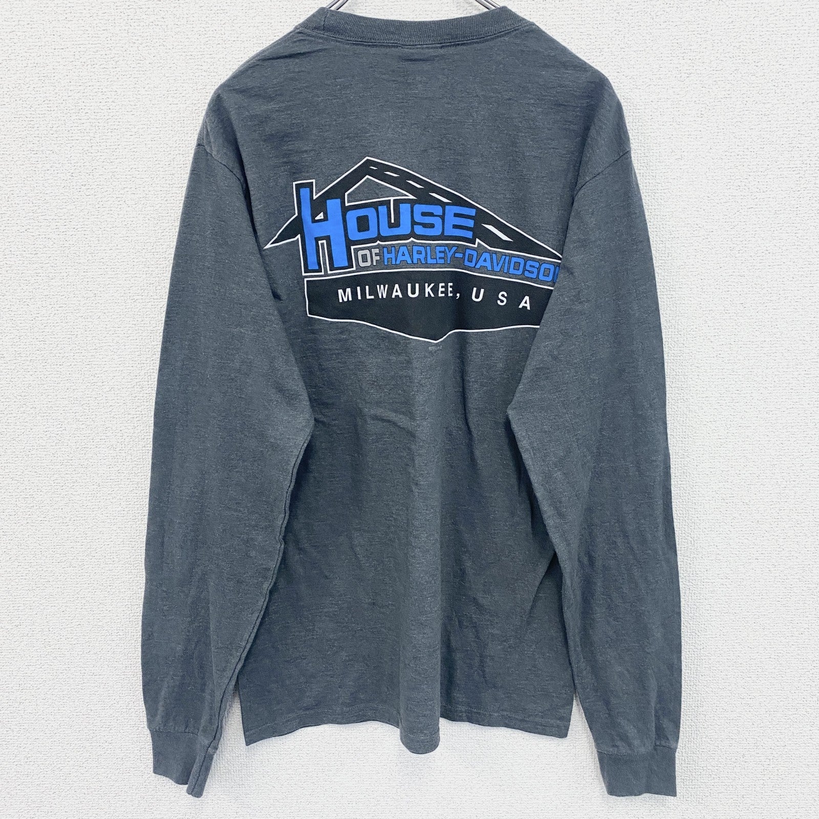 HARLEY DAVIDSON ハーレーダビッドソン 長袖プリントTシャツ 灰色 グレー Mサイズ