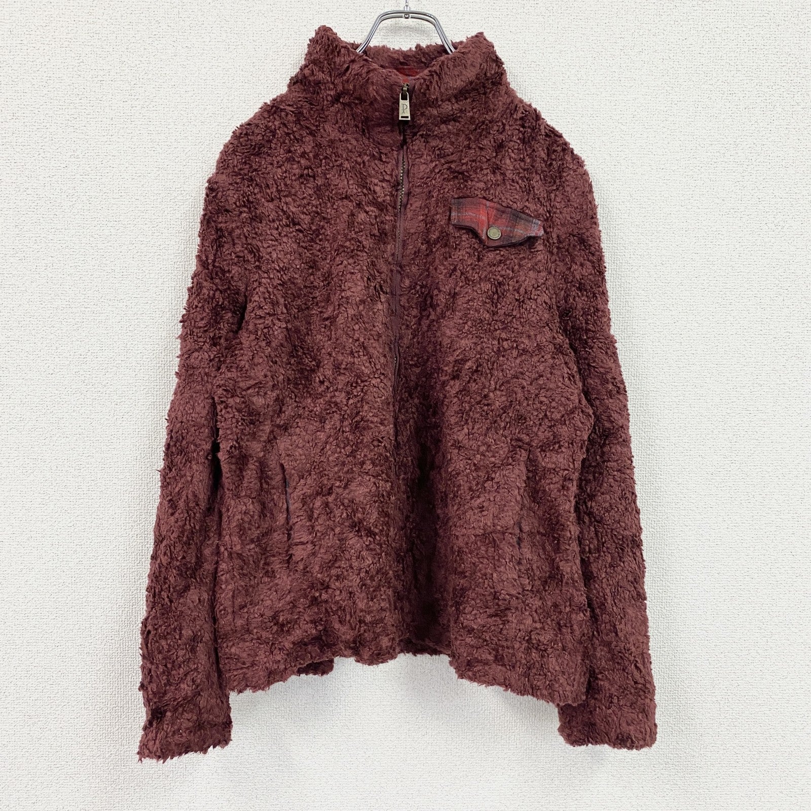 PENDLETON ペンドルトン フルジップフリースジャケット チェック柄切替デザイン 赤 レッド Lサイズ