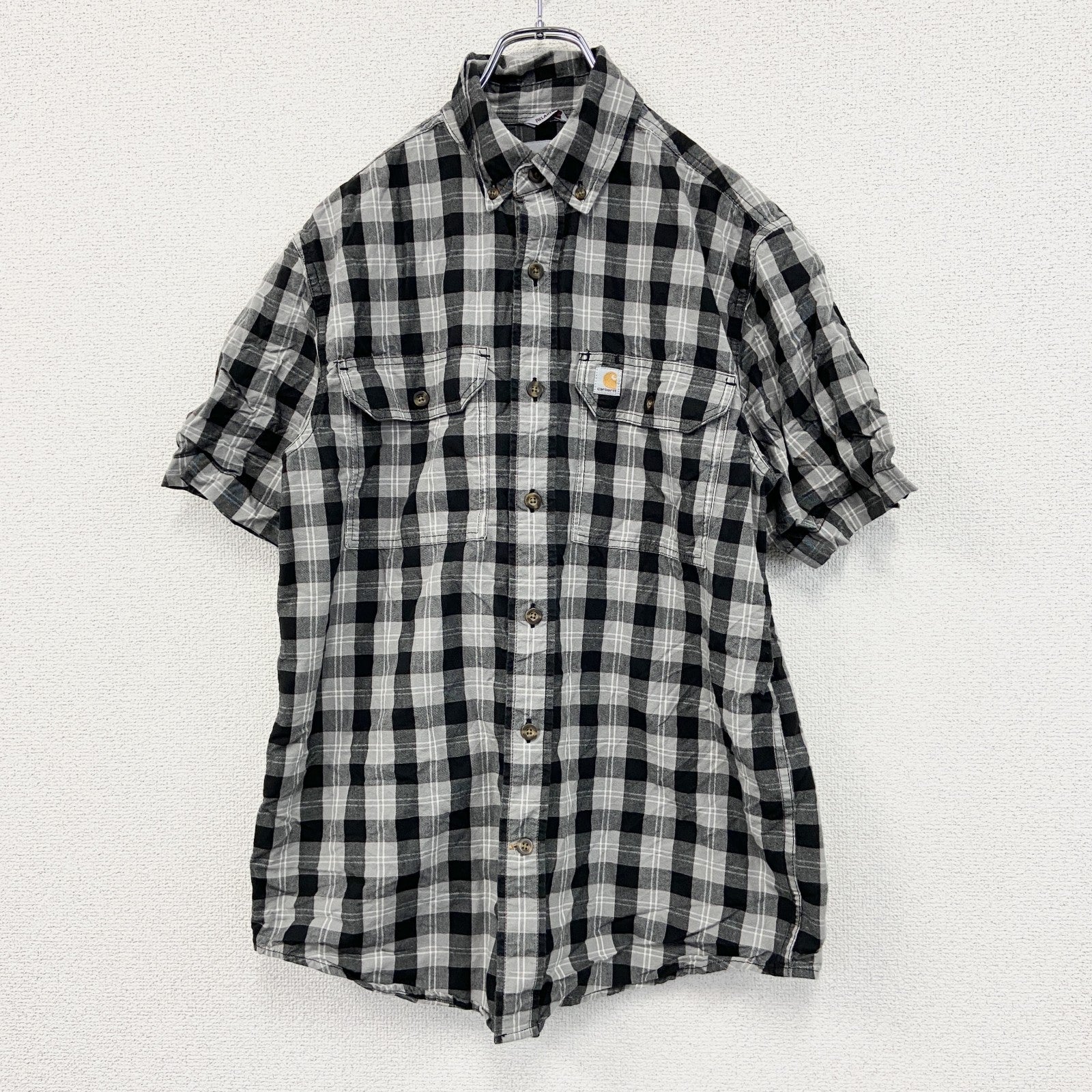 Carhartt カーハート 半袖ボタンダウンシャツ ダブルポケット チェック柄 黒 ブラック Sサイズ