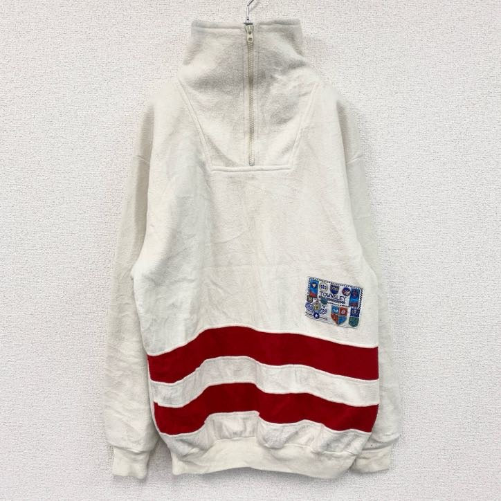 80s Stats ハーフジップフリースプルオーバージャケット/ボアジャケット ヴィンテージ 白 ホワイト XLサイズ