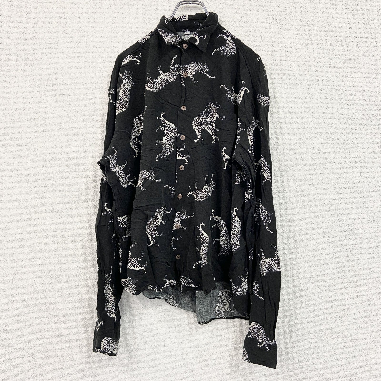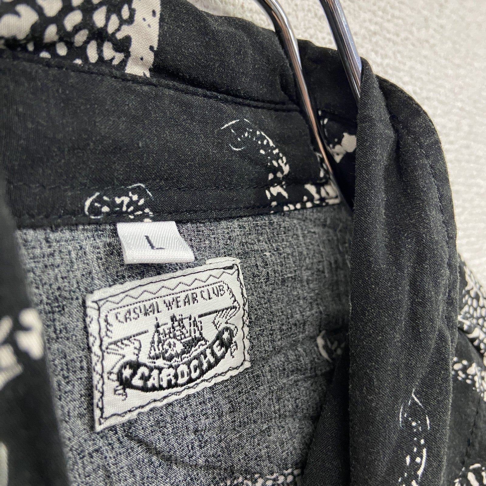CARDCHE 長袖総柄デザインシャツ 黒 ブラック Lサイズ