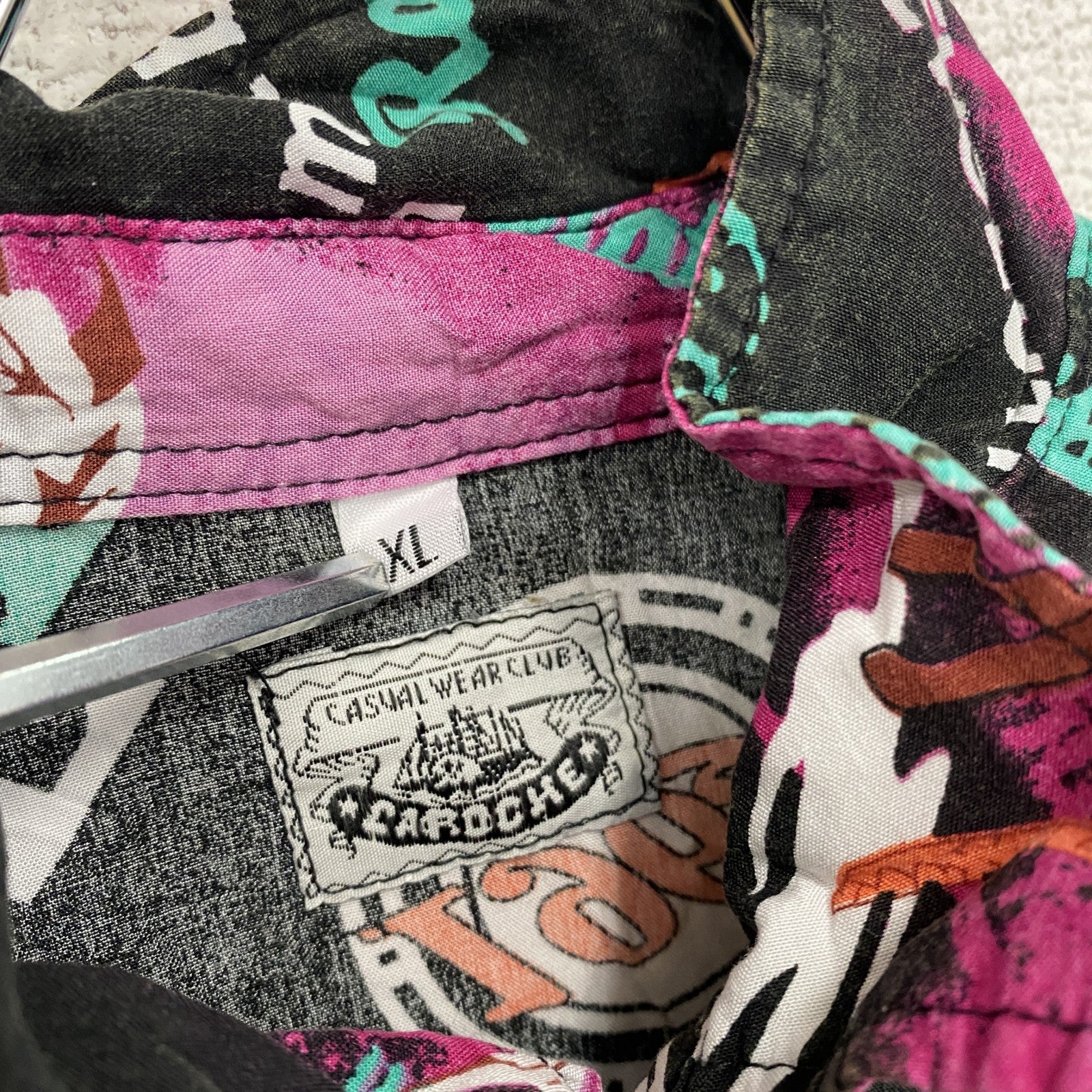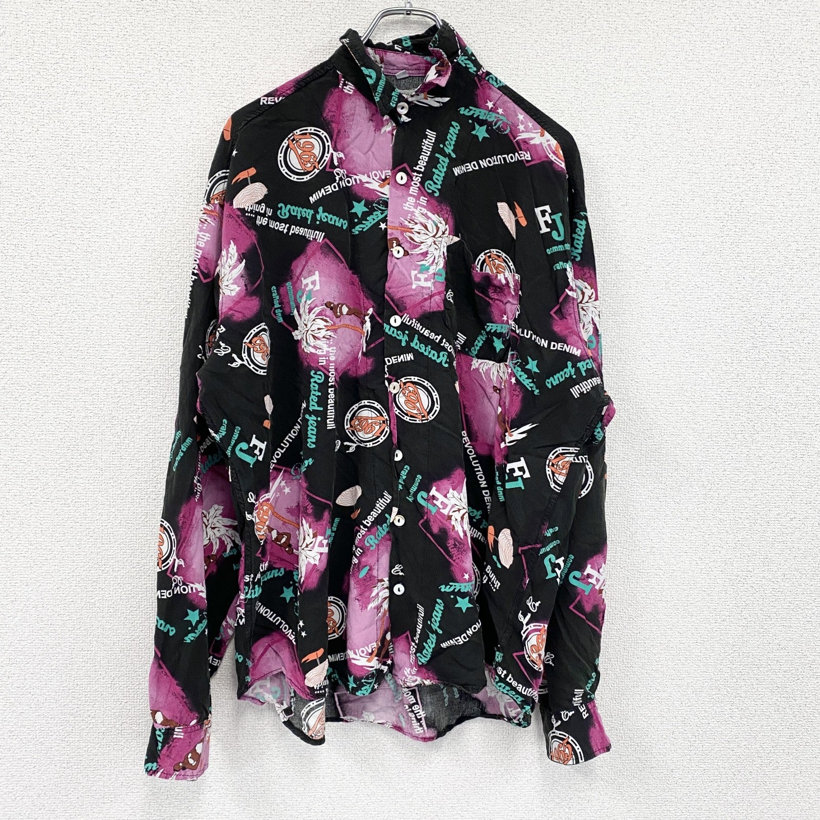 CARDCHE 長袖シャツ 総柄 黒 ブラック ピンク XLサイズ