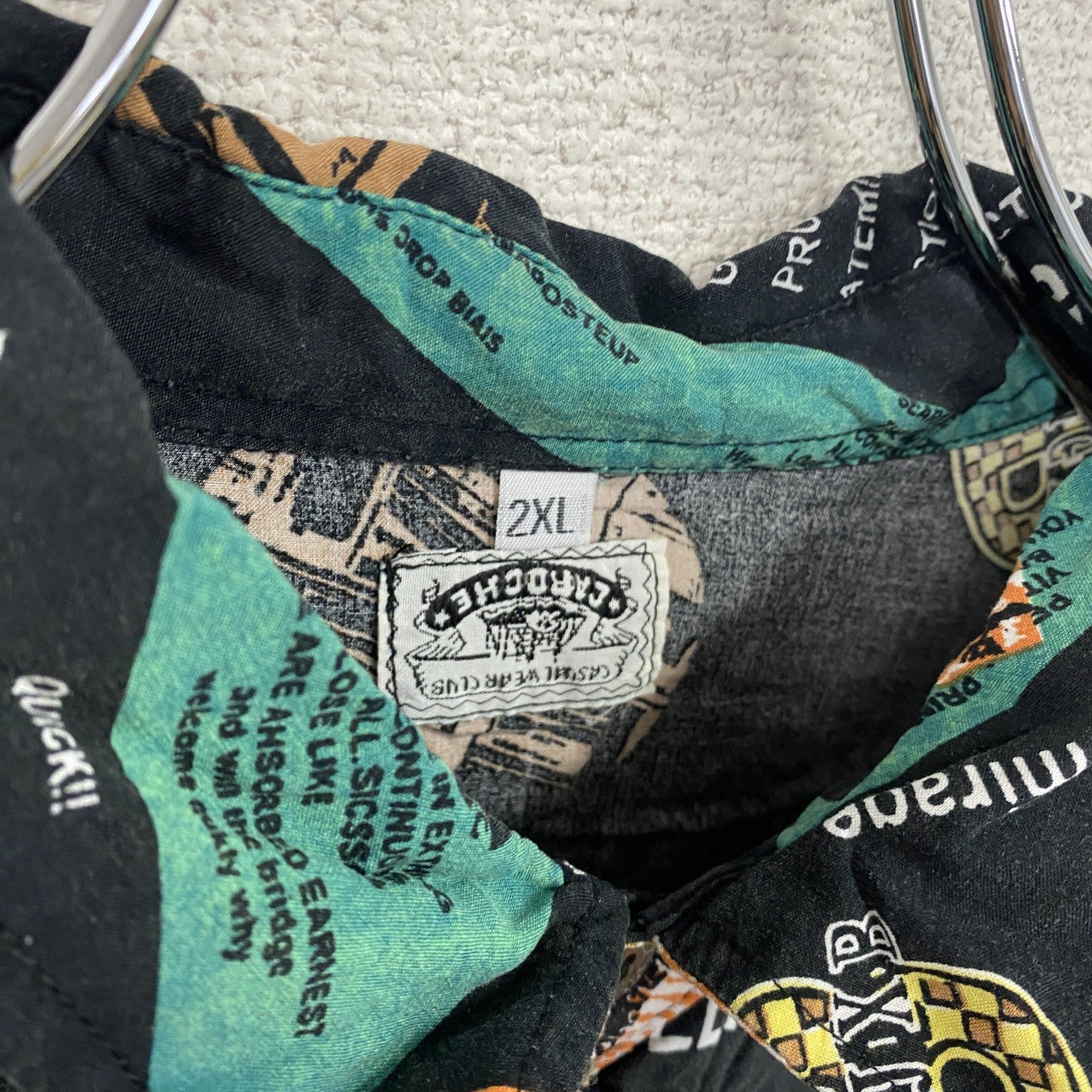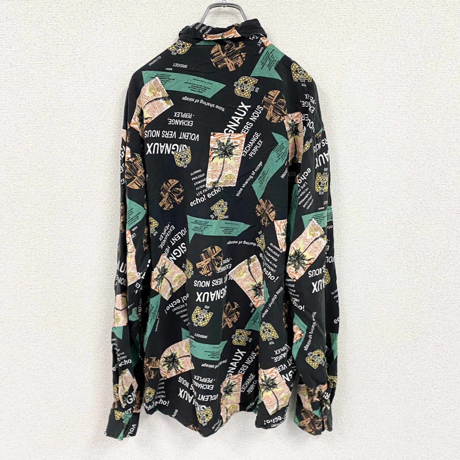 CARDCHE 長袖総柄デザインシャツ 黒 ブラック 2XLサイズ