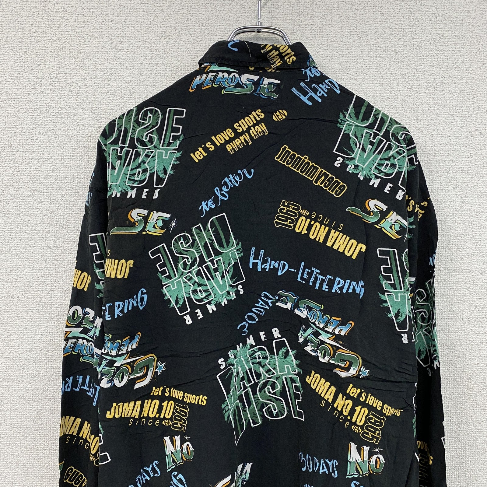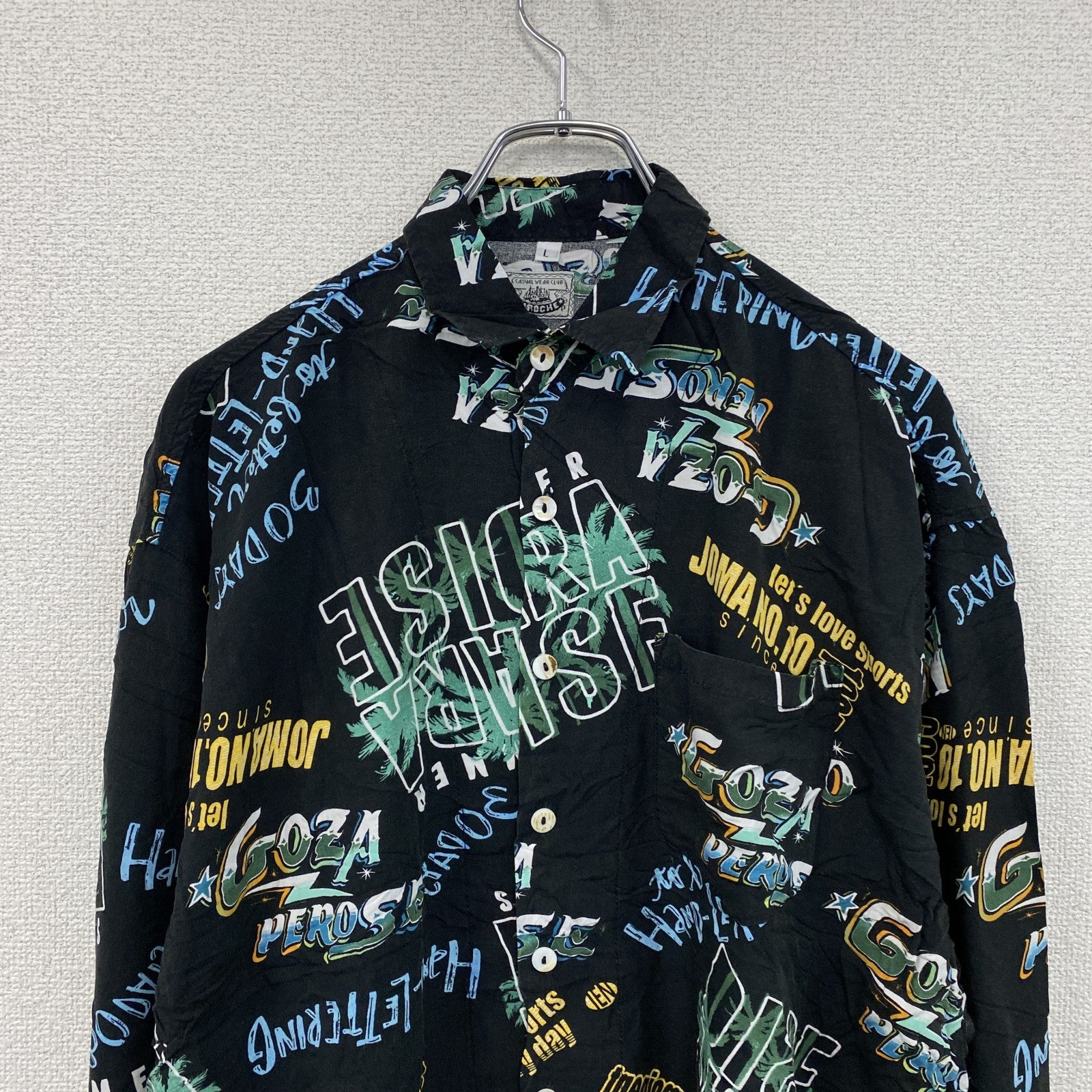 CARDCHE 長袖総柄デザインシャツ マルチカラー 黒 ブラック Lサイズ