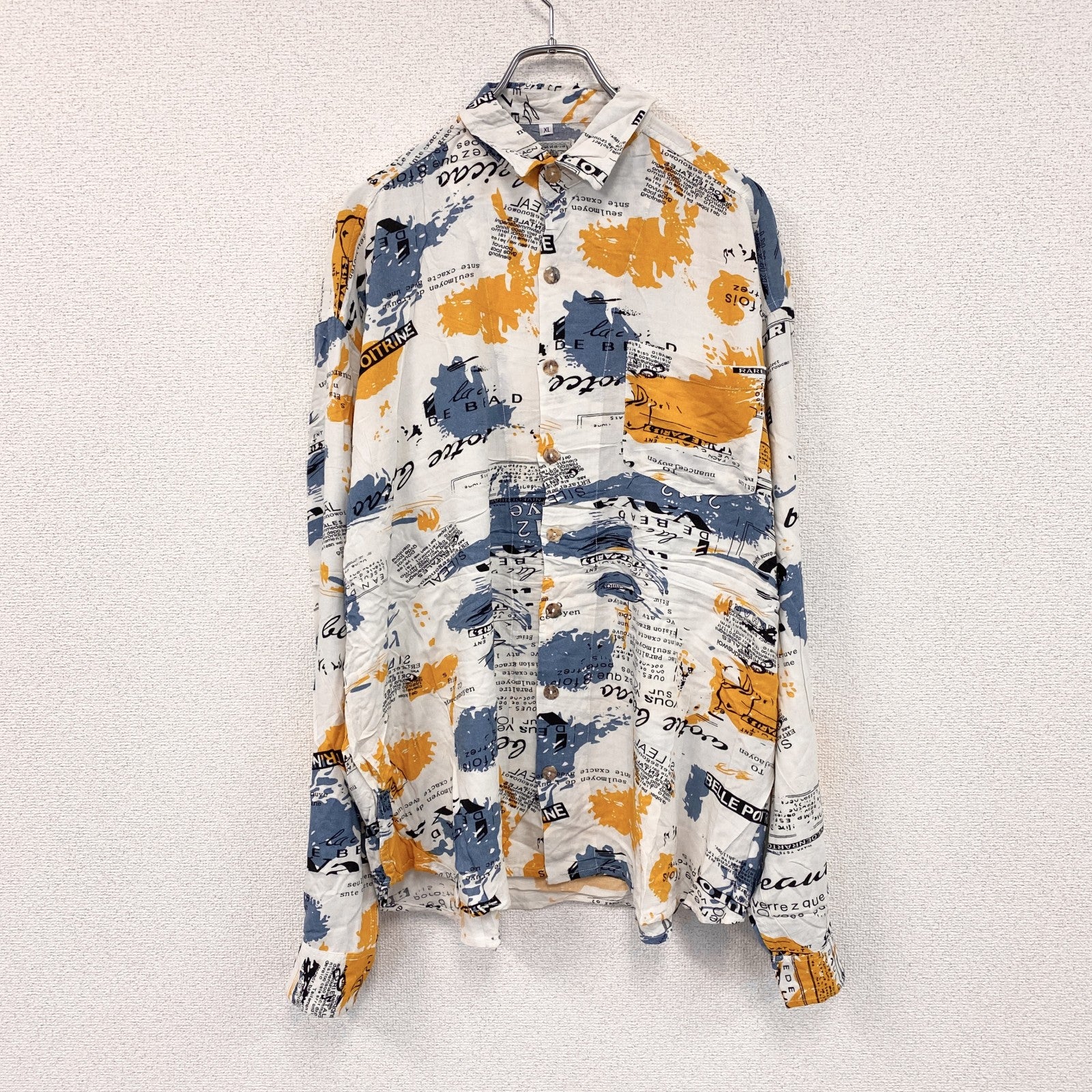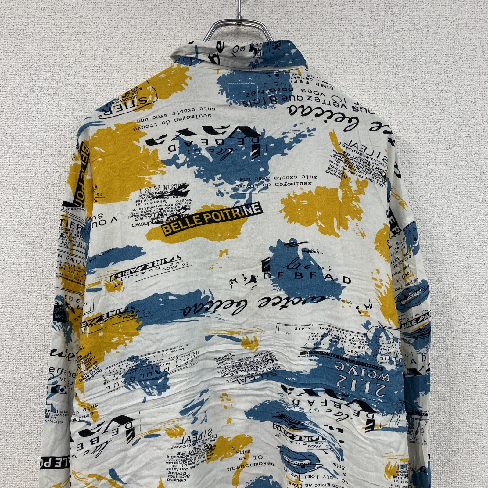 CARDCHE 長袖総柄デザインシャツ マルチカラー 白 ホワイト 青 ブルー 黄色 イエロー XLサイズ