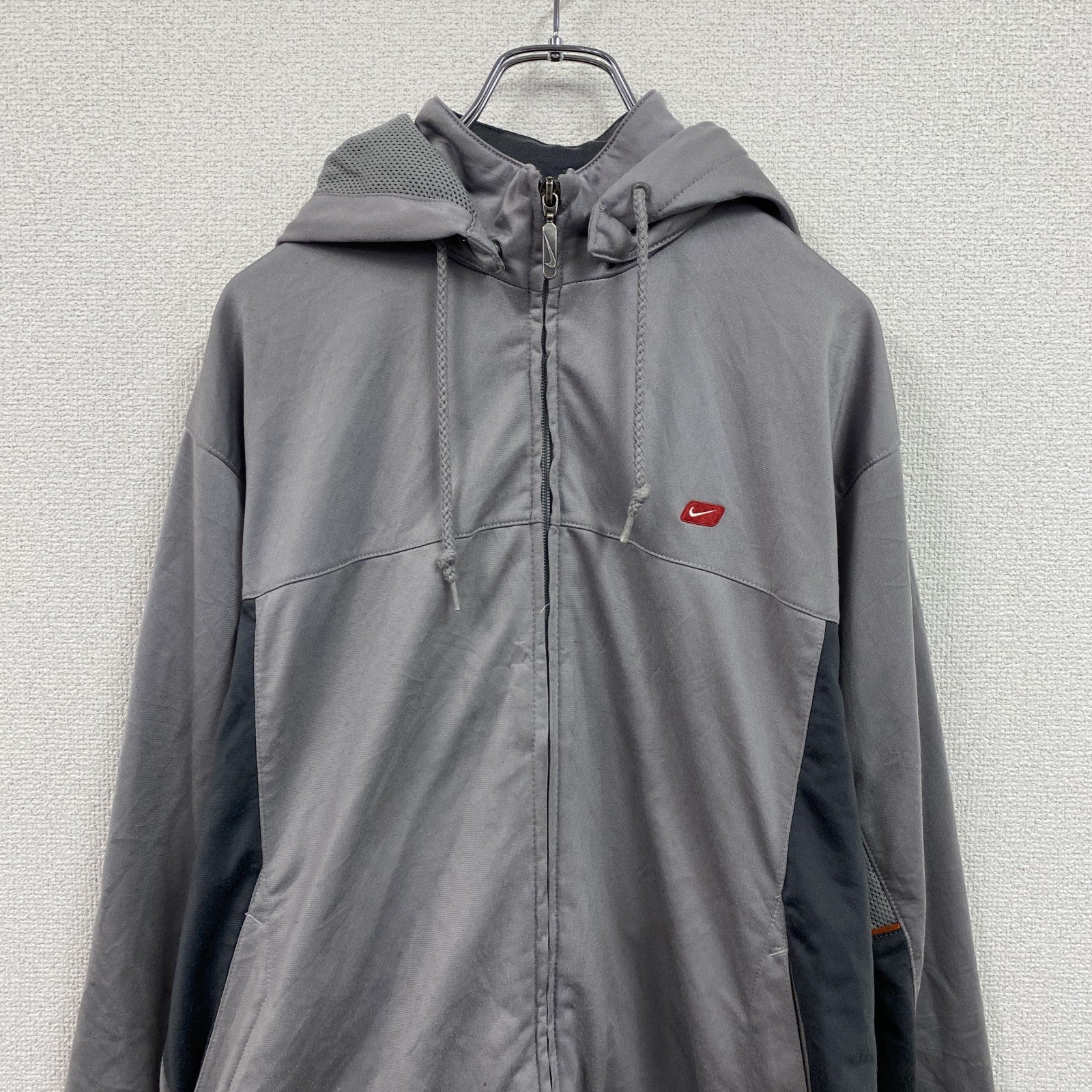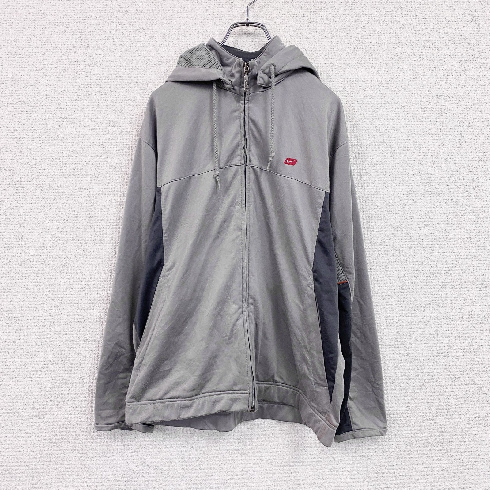 00s NIKE ナイキ フルジップジャージパーカー フード取り外し可能 ヴィンテージ 灰色 グレー Mサイズ