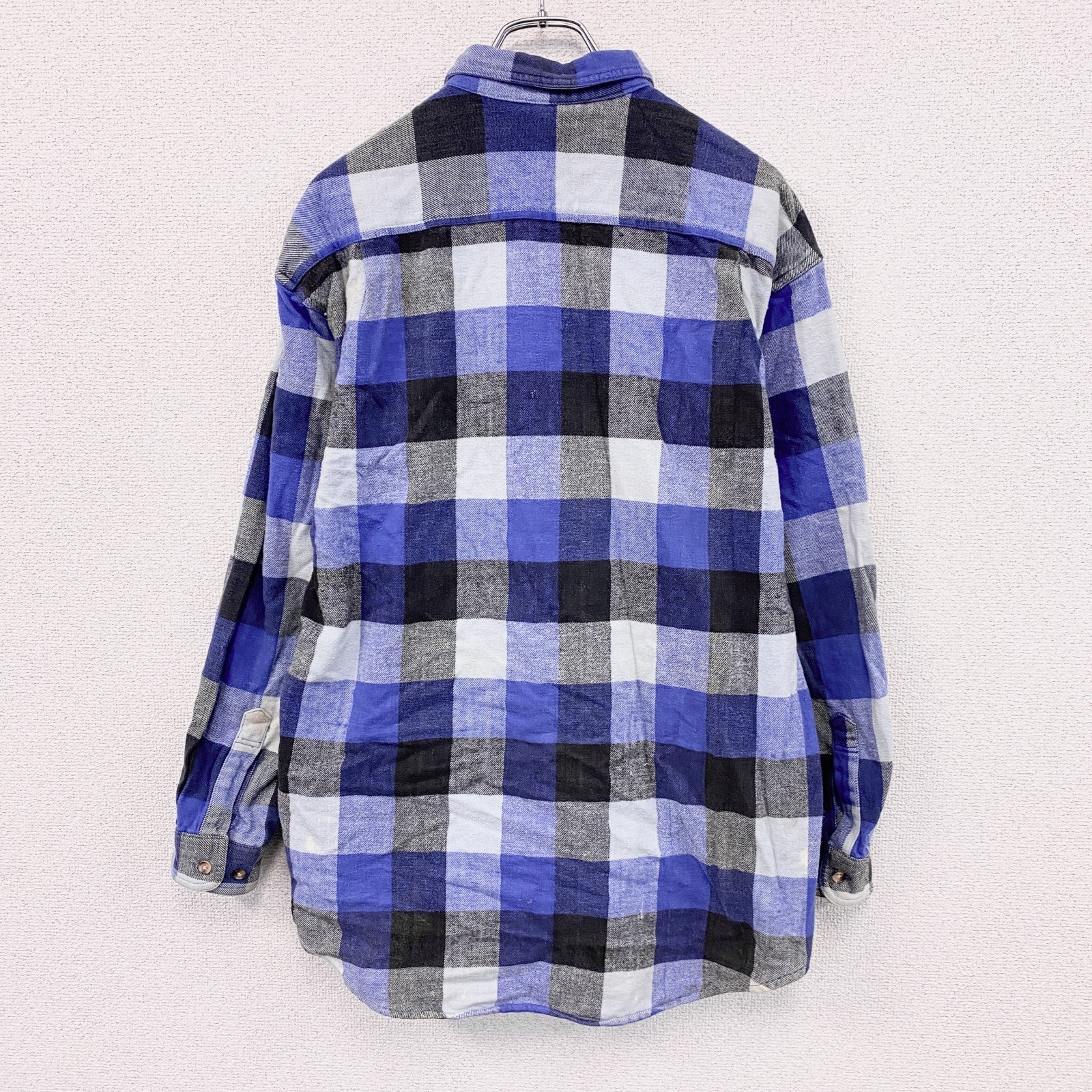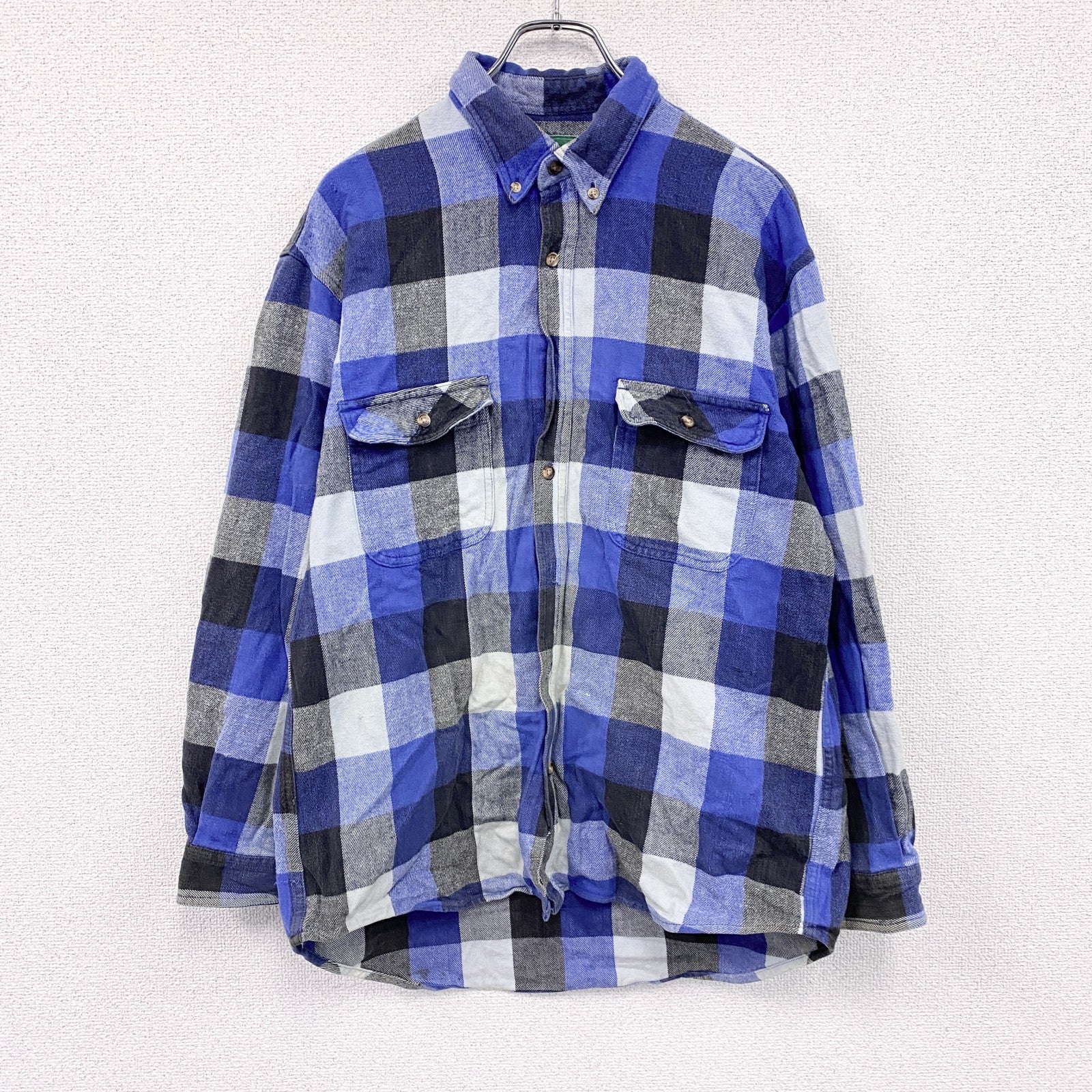 ~00s 7UP セブンアップ 長袖ネルシャツ ボタンダウンシャツ ブロックチェック ヴィンテージ 青 ブルー Lサイズ