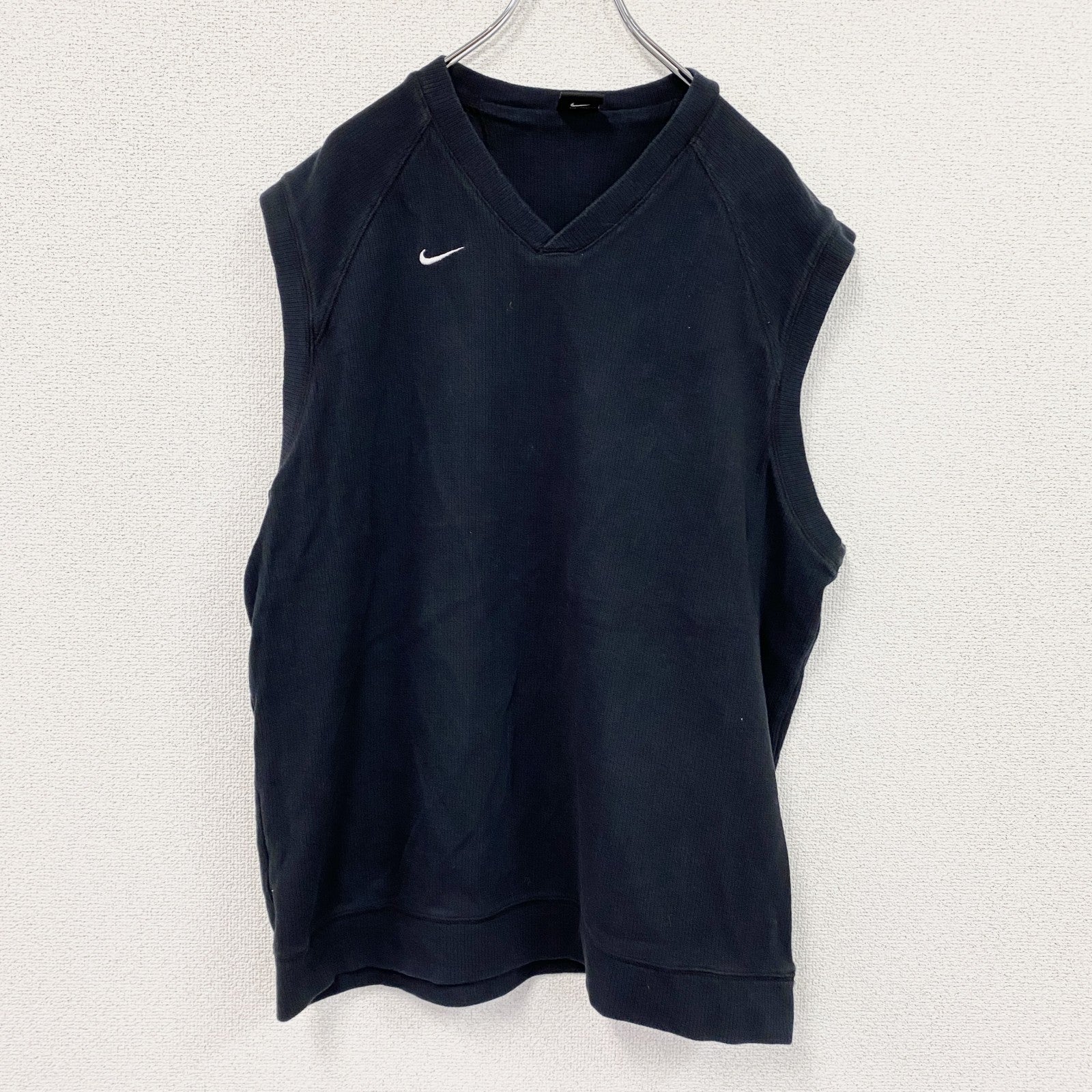 90s NIKE ナイキ コットンニットベスト 刺繍ロゴ スウッシュ ヴィンテージ 黒 ブラック Lサイズ