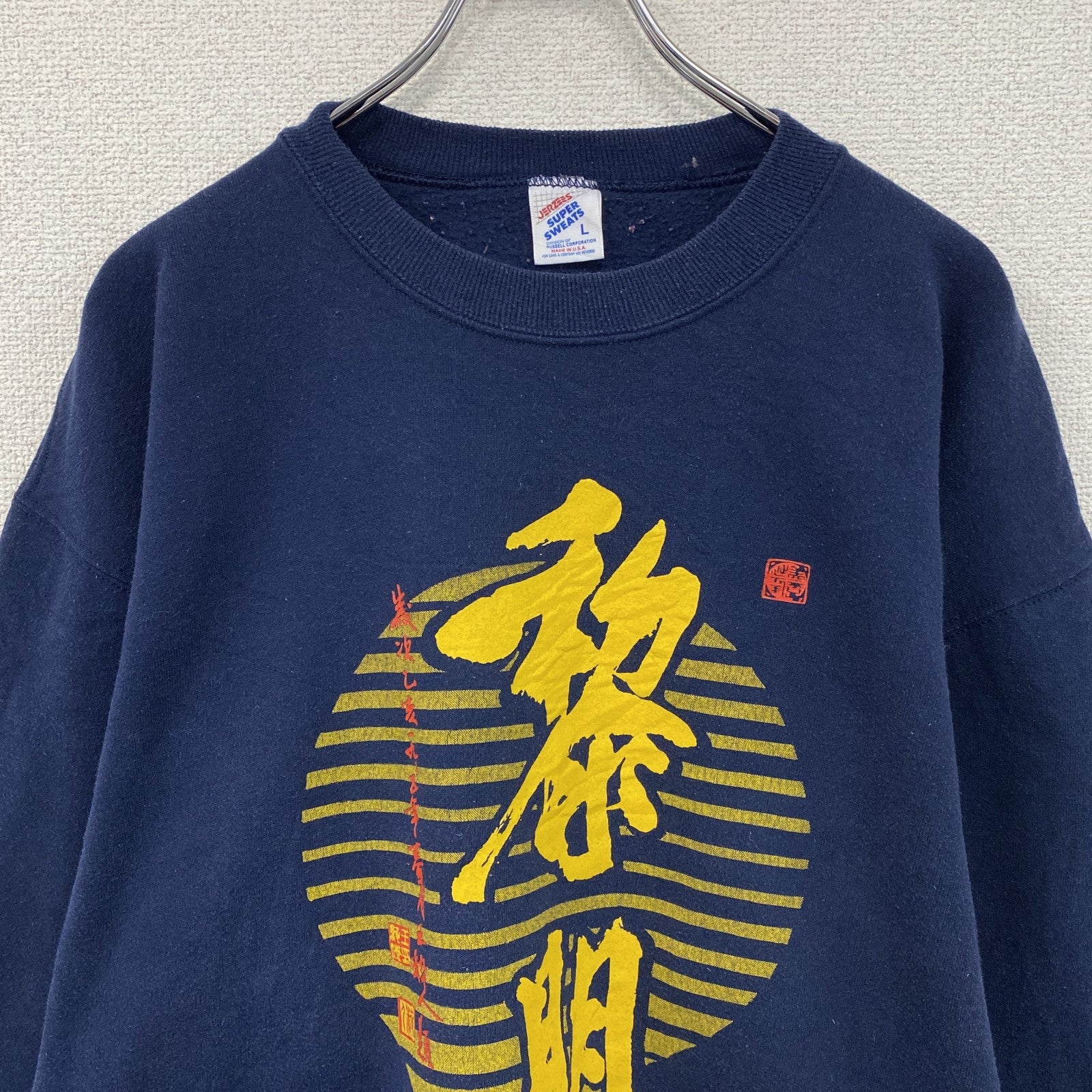 80s~ JERZEES ジャージーズ 黎明中文学校 カレッジプリントスウェット/トレーナー ヴィンテージ 紺 ネイビー Lサイズ