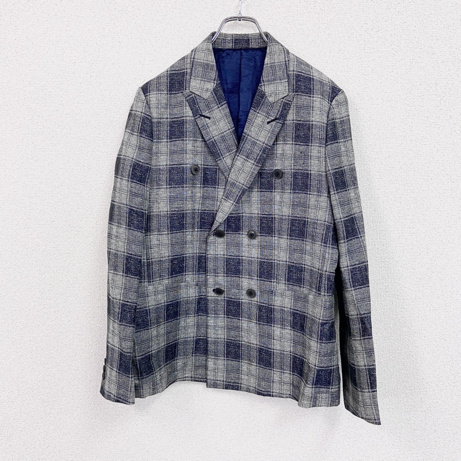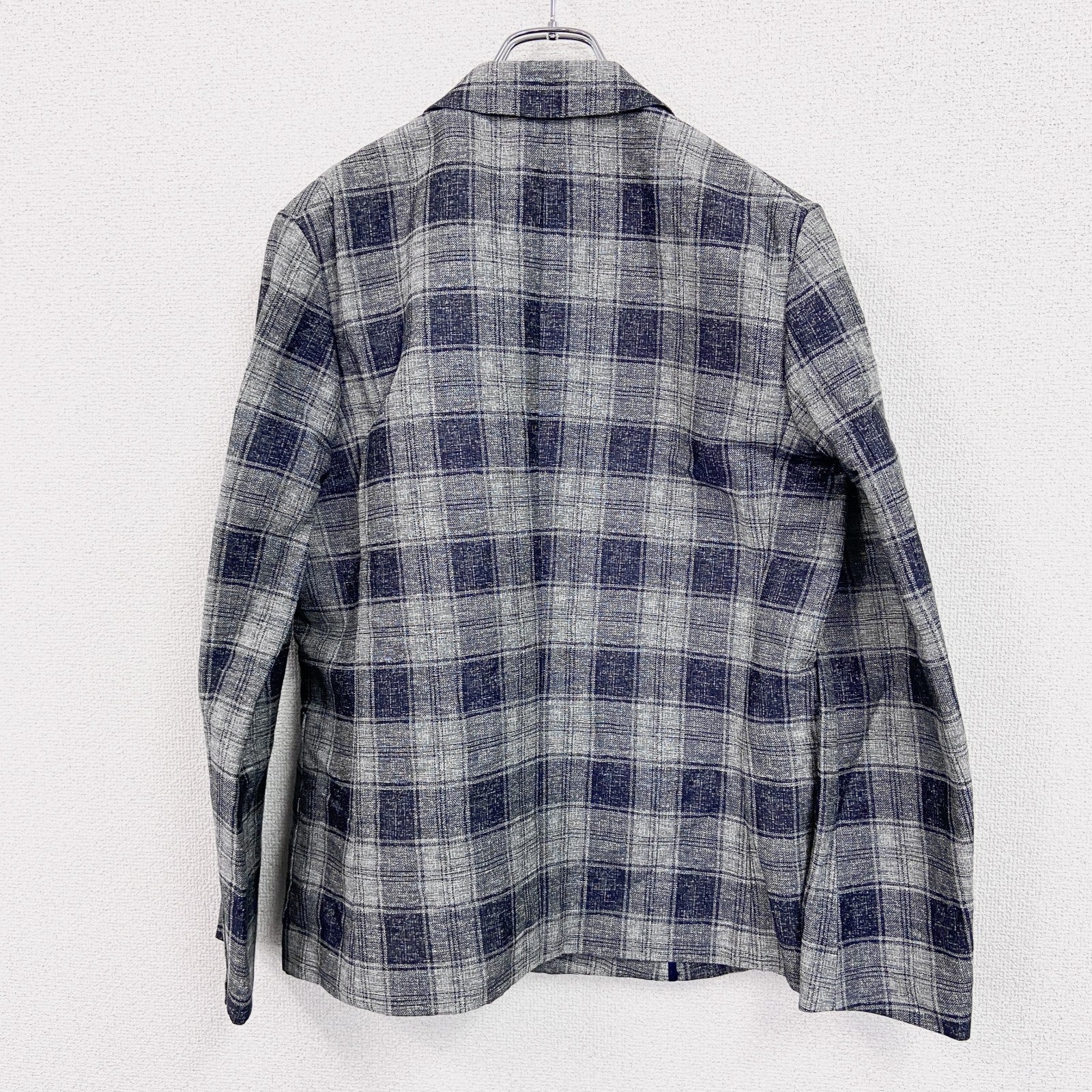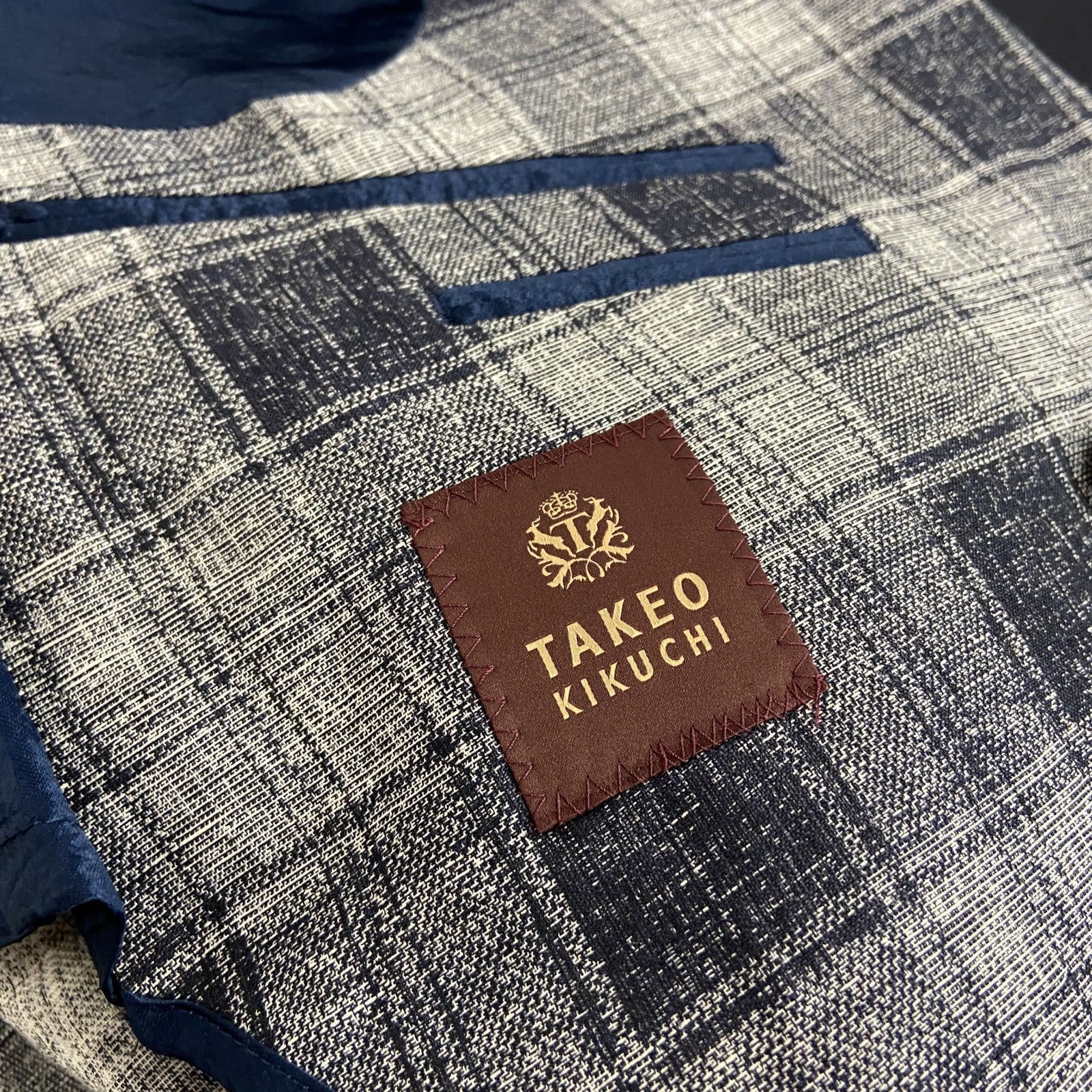TAKEO KIKUCHI タケオ キクチ リネン混合テーラードジャケット ピークドラペル チェック柄 グレー