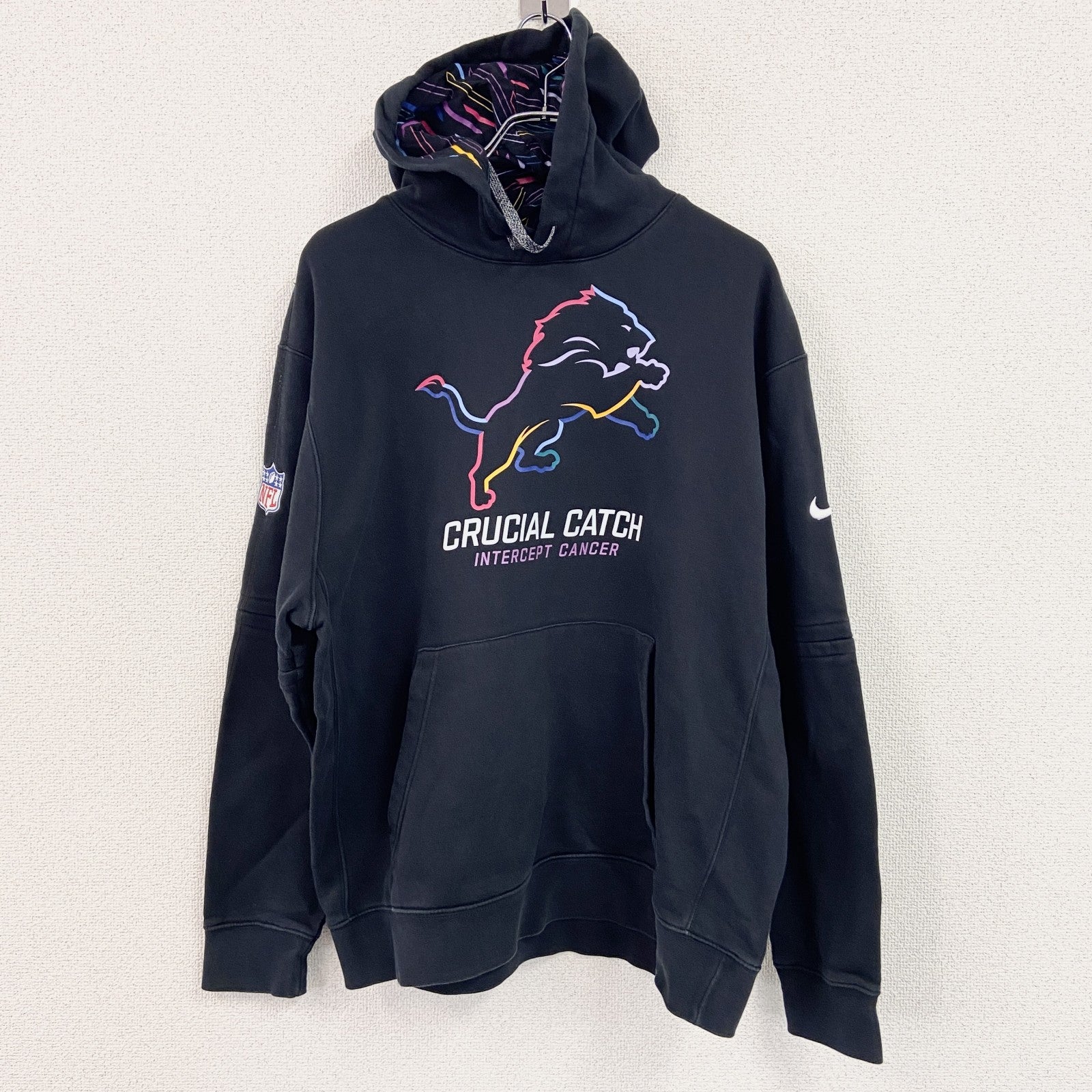NIKE ナイキ NFL Detroit Lions ウェットパーカー/フーディー スウッシュ 黒 ブラック XLサイズ