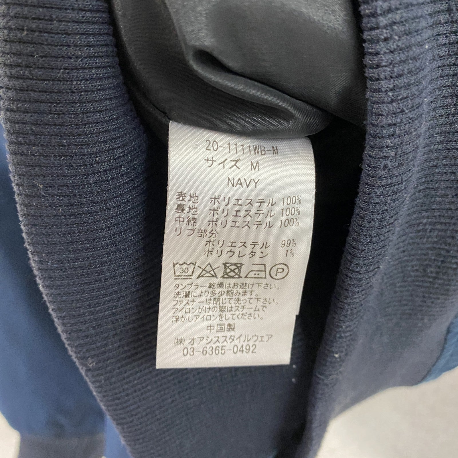 WWS ワークウェアスーツ MA-1 ブルゾン/スイングトップ 中綿入り 紺 ネイビー Mサイズ
