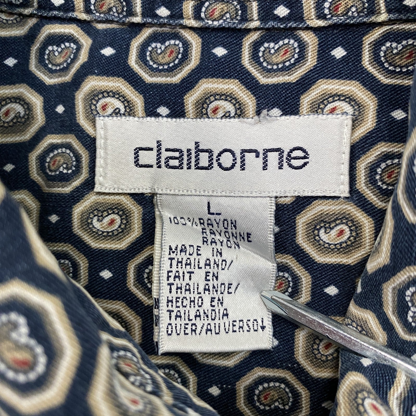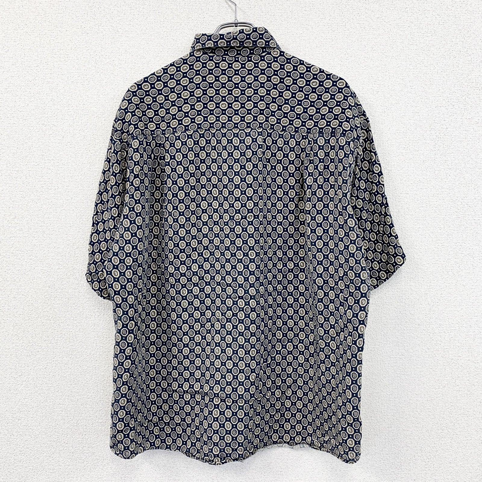 Claiborne クレイボーン 半袖シャツ 総柄 紺 ネイビー Lサイズ