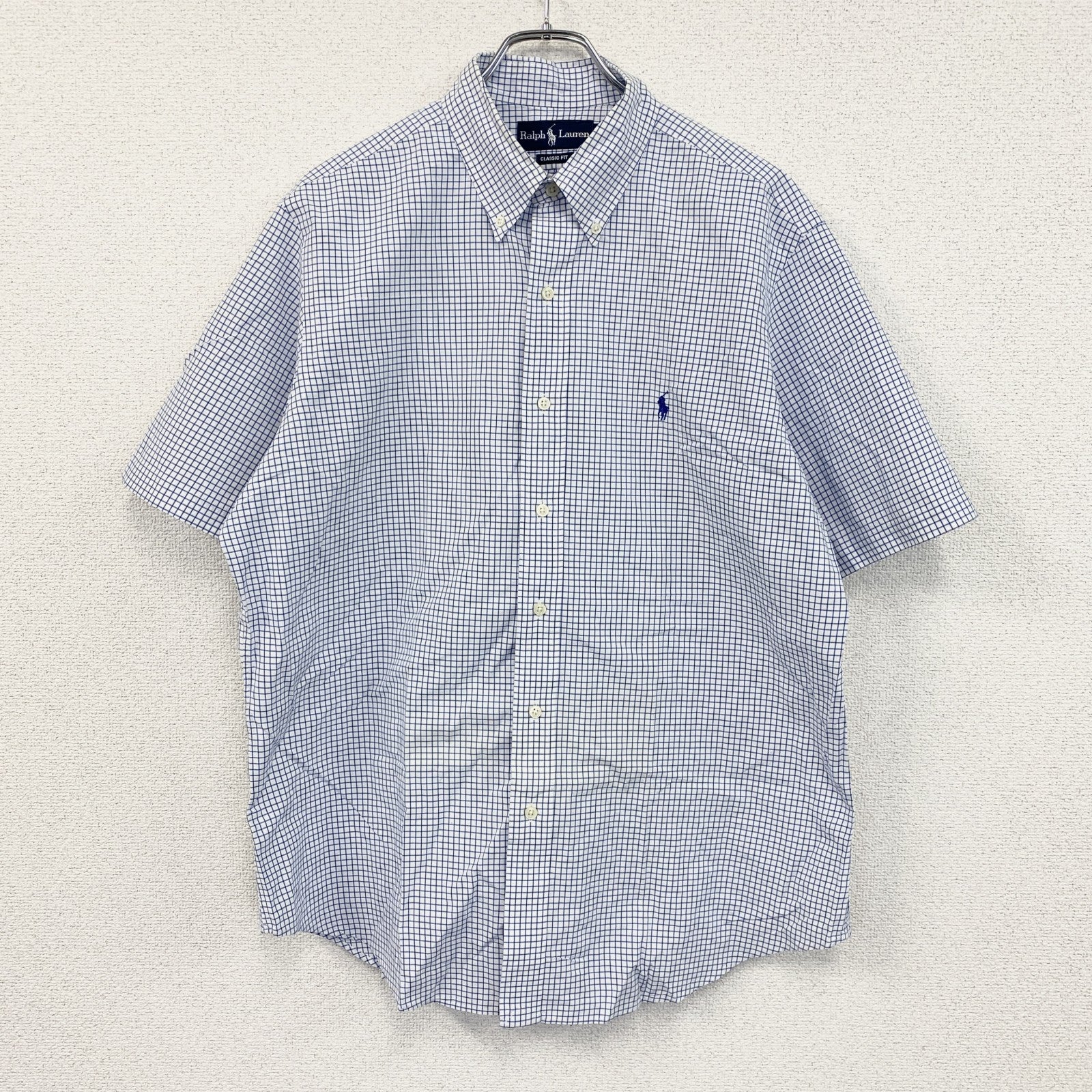 Ralph Lauren ラルフローレン 半袖ボタンダウンシャツ チェック柄 白 ホワイト 青 ブルー Lサイズ