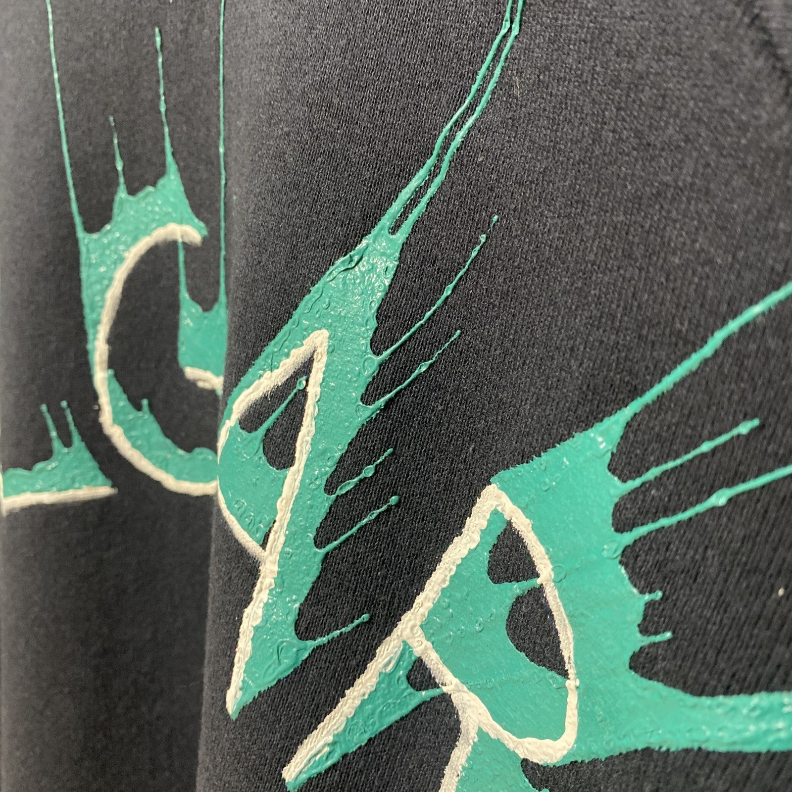 古着 used 90s USA製 フルーツオブザルーム 長袖ペイントスウェット トレーナー 黒 ビックシルエット XLサイズ
